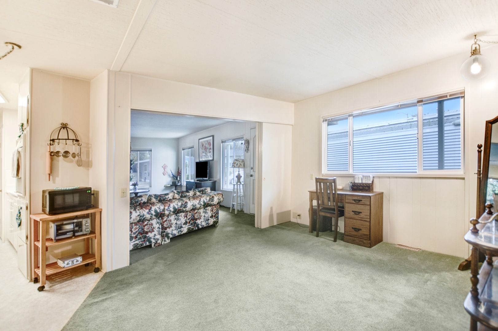 Welcome to your new home in the highly sought-after Valle Vista Mobile Home Subdivision, a serene community especially designed with seniors in mind. This charming 2-bedroom, 2-bathroom residence offers today's comforts with a warm and welcoming atmosphere. Step inside to discover a spacious living area that effortlessly flows into the dining space, which is perfect for entertaining family and friends. Adjacent to the kitchen, you'll find an additional sitting area, ideal for casual meals, meet-ups, or morning coffee with a crossword puzzle. The home boasts central heating and air conditioning, ensuring year-round comfort. Recent exterior paint enhances its curb appeal, while dual pane windows provide energy efficiency and tranquility. A bonus sunroom, not included in the home's square footage, offers a delightful retreat for reading, engaging in hobbies, or simply relaxing in the natural sunlight. This is the only community residential park in Sonoma County where your pride of ownership extends to the land, which you will own as well. Parking is a breeze with covered spaces, and the community's amenities are exceptional. Instead of paying an exorbitant rental space fee, you pay a modest monthly HOA fee, which covers access to a sparkling pool, scenic paths, and a well-appointed clubhouse. Additionally, Valle Vista offers an on-site parking area for recreational vehicle storage, available at an additional annual charge, where buyers are encouraged to verify cost and availability. Various shopping opportunities and exceptional dining experiences are not far away.